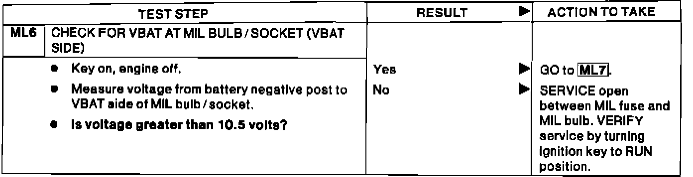 ML6 - Check For VBAT at MIL Bulb/Socket