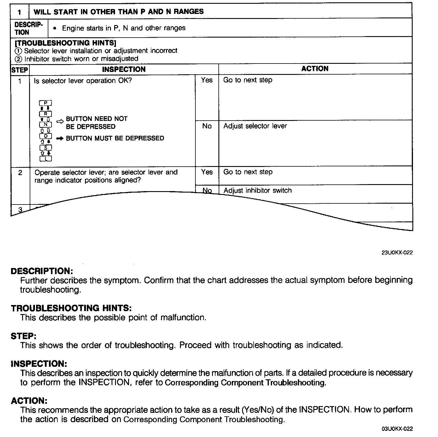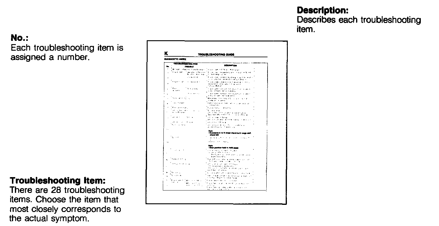 IntroductionMost of the automatic transaxle control system is electrically controlled, often making it difficult to diagnose problems in the system, especially intermittent problems. Before undertaking actual checks, take a few minutes to talk with a customer who approaches with a drivability complaint. The customer is often a good source of information on such problems, especially intermittent ones. Through talks with the customer, one can find out what the symptoms are and under what conditions they occur.