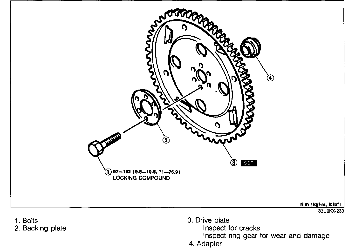 Tightening torque: 97 - 102 N.m {9.8 - 10.5 kg.m, 71 - 75.9 ft.lbf}