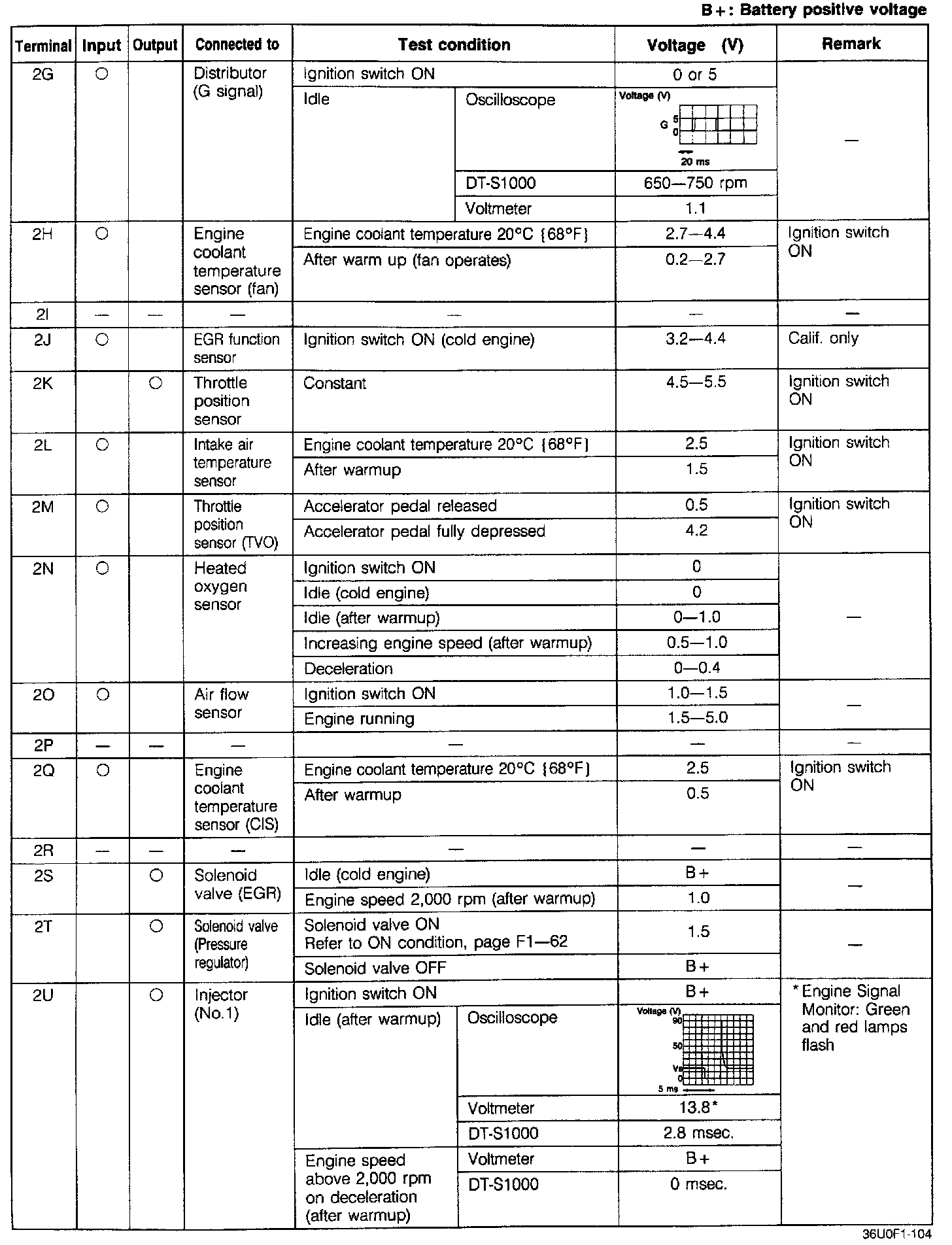 Pinout Values and Diagnostic Parameters