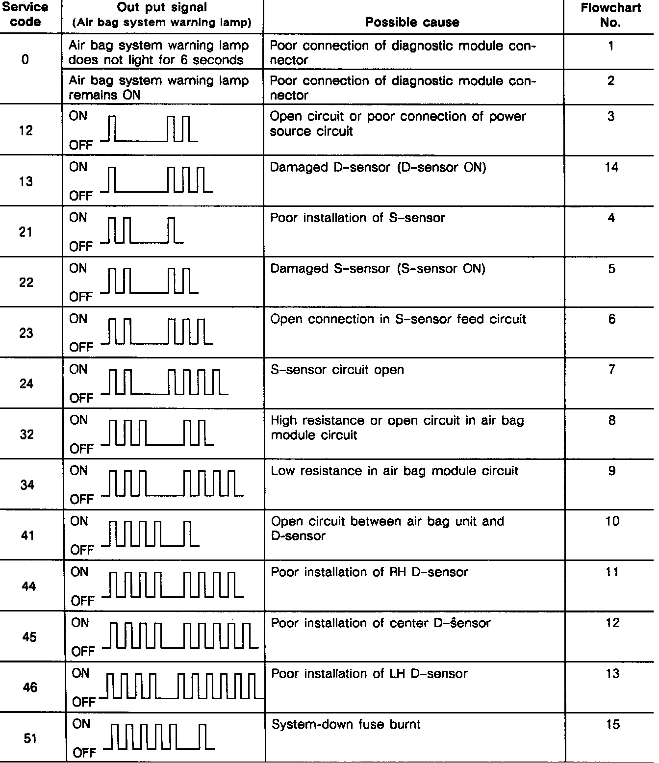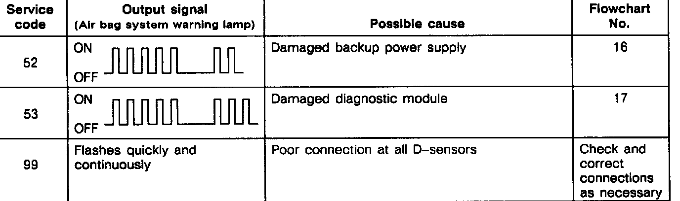 If two or more troubles exist in the air bag system, the warning lamp indicates the cause of the trouble with the highest priority.
