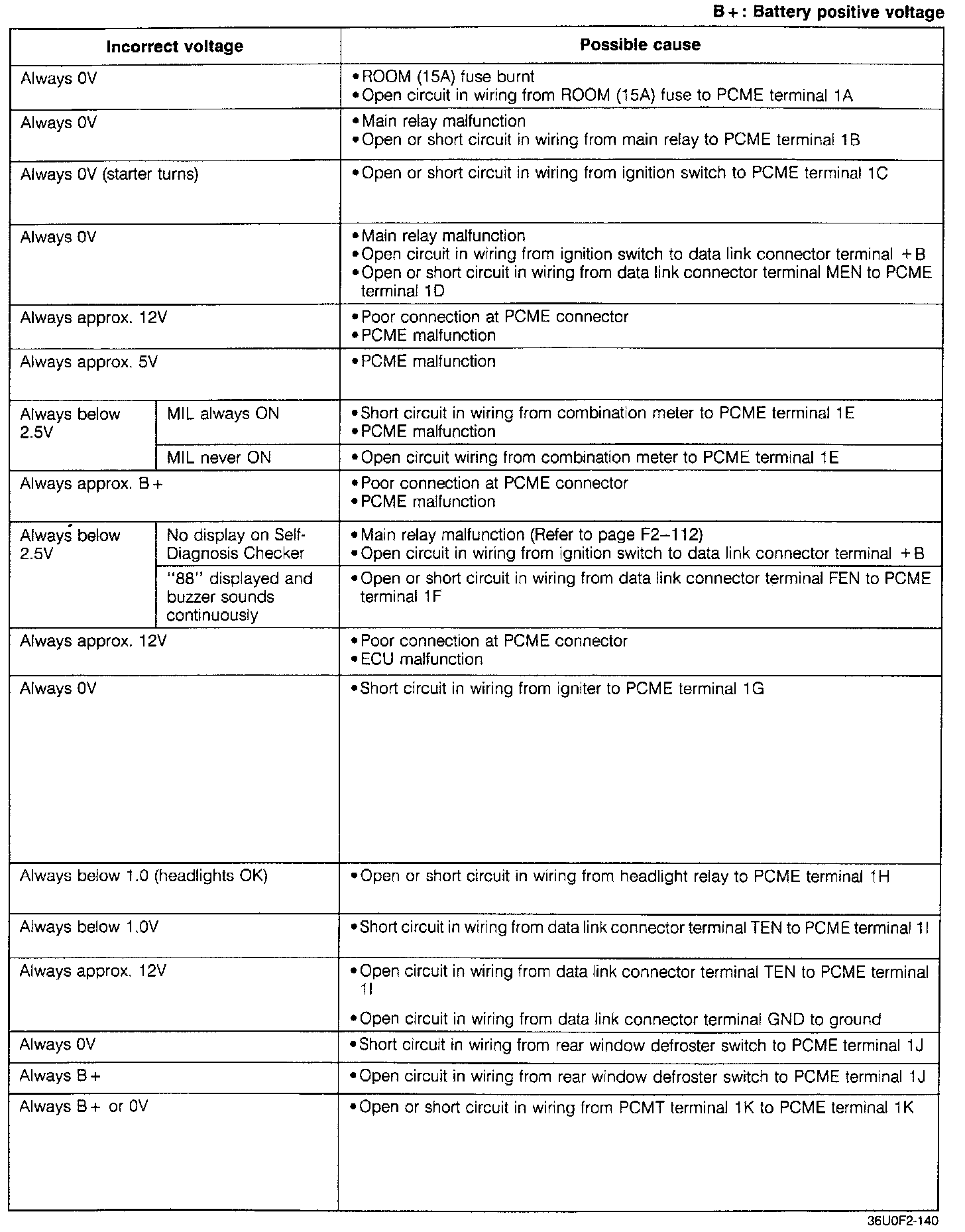 Pinout Values and Diagnostic Parameters