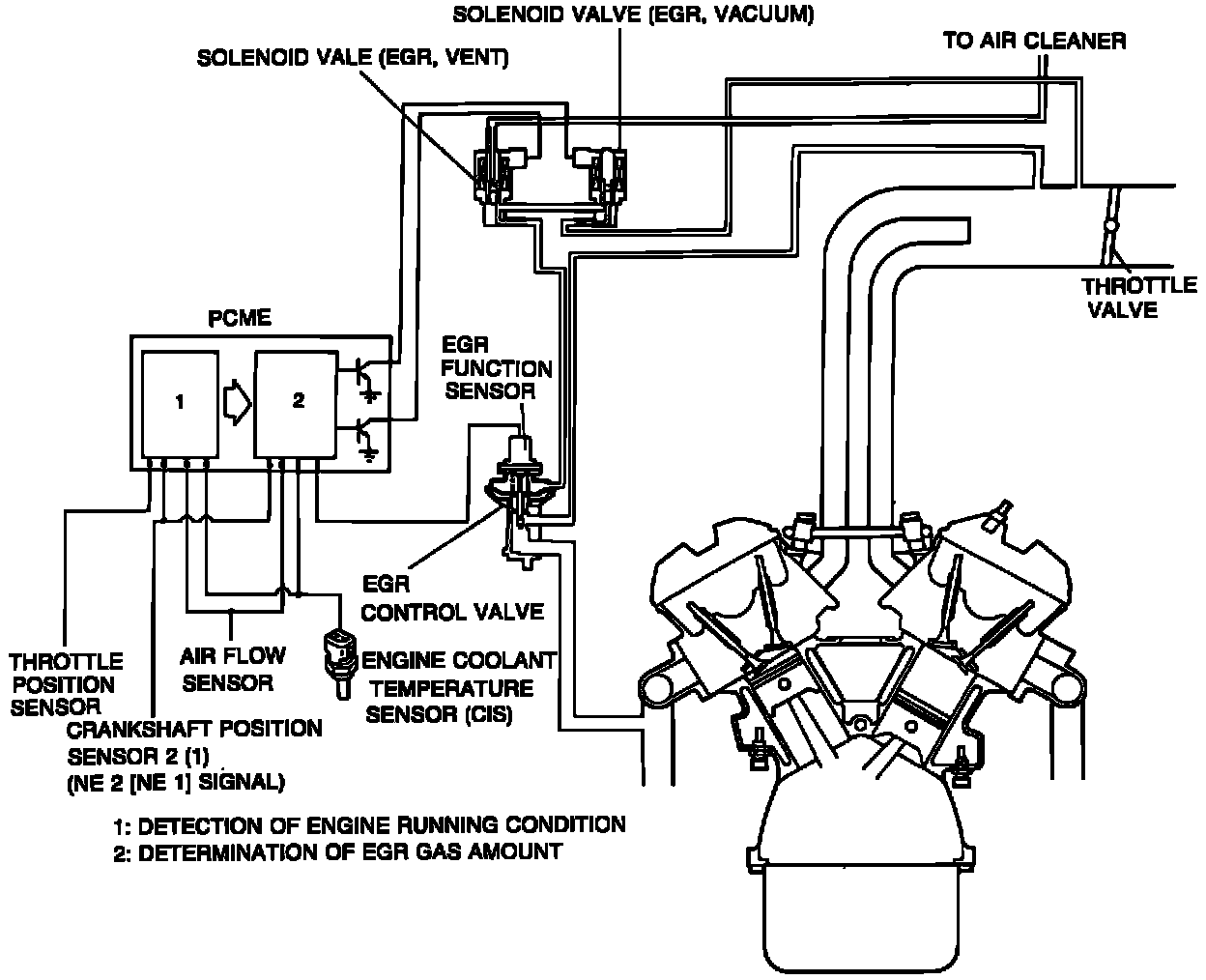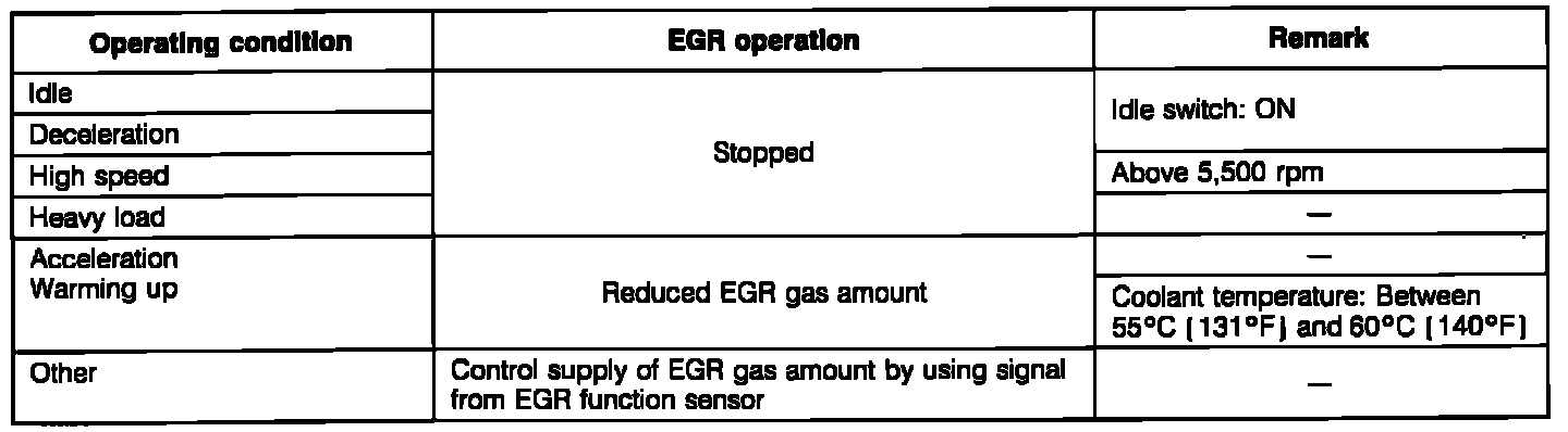 System recirculates a portion of exhaust gas through the EGR valve and intake manifold into the combustion chambers. To improve driveability when engine is cold, system does not operate when coolant temperature is below 131°F (55°C).