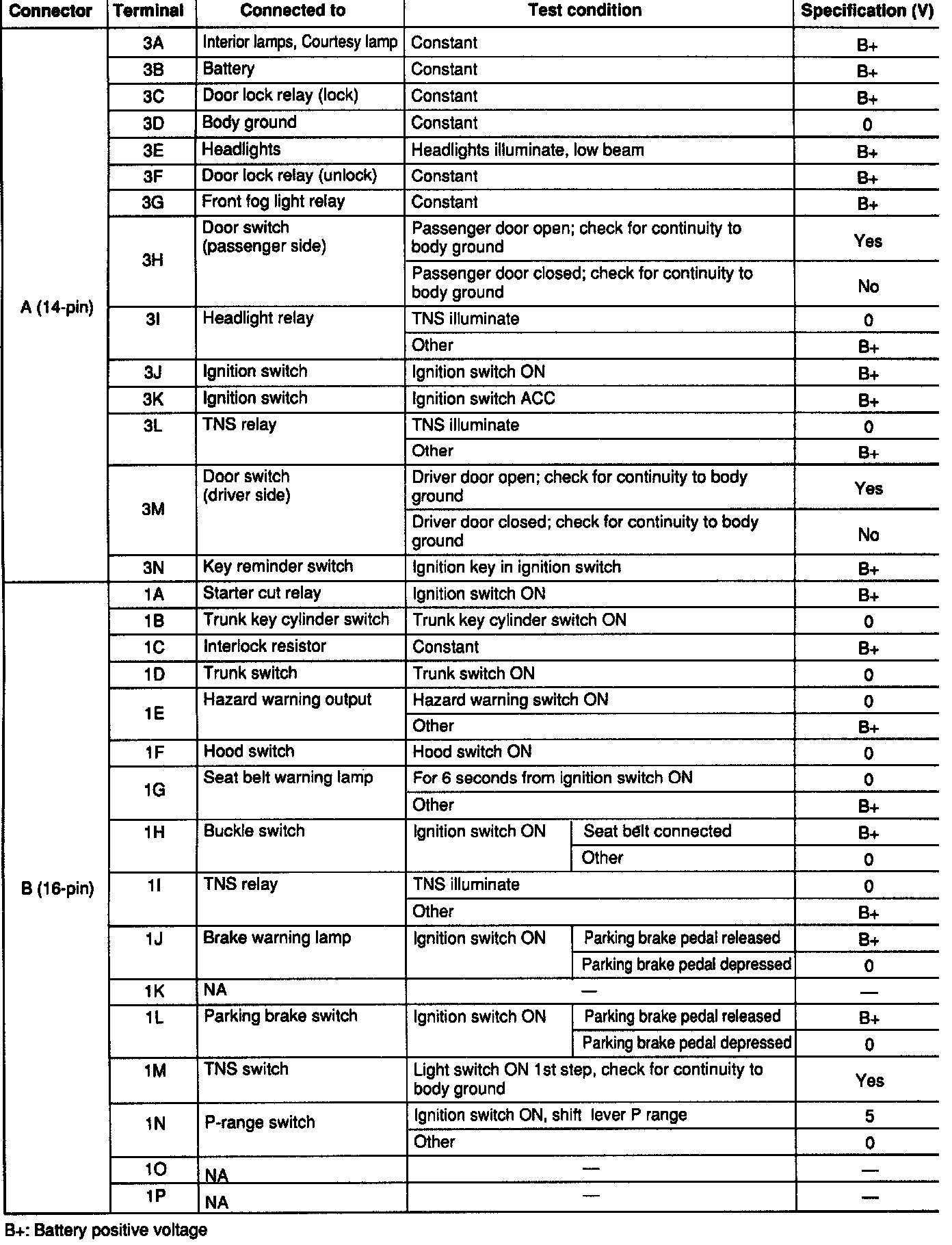 CONNECTOR PIN OUT