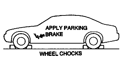 1. Apply the parking brake and securely position wheel chocks to prevent the vehicle from rolling.
