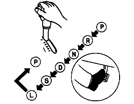 3. While depressing the brake pedal, shift the selector lever to each range (P-L).Leave it a few seconds in each range.