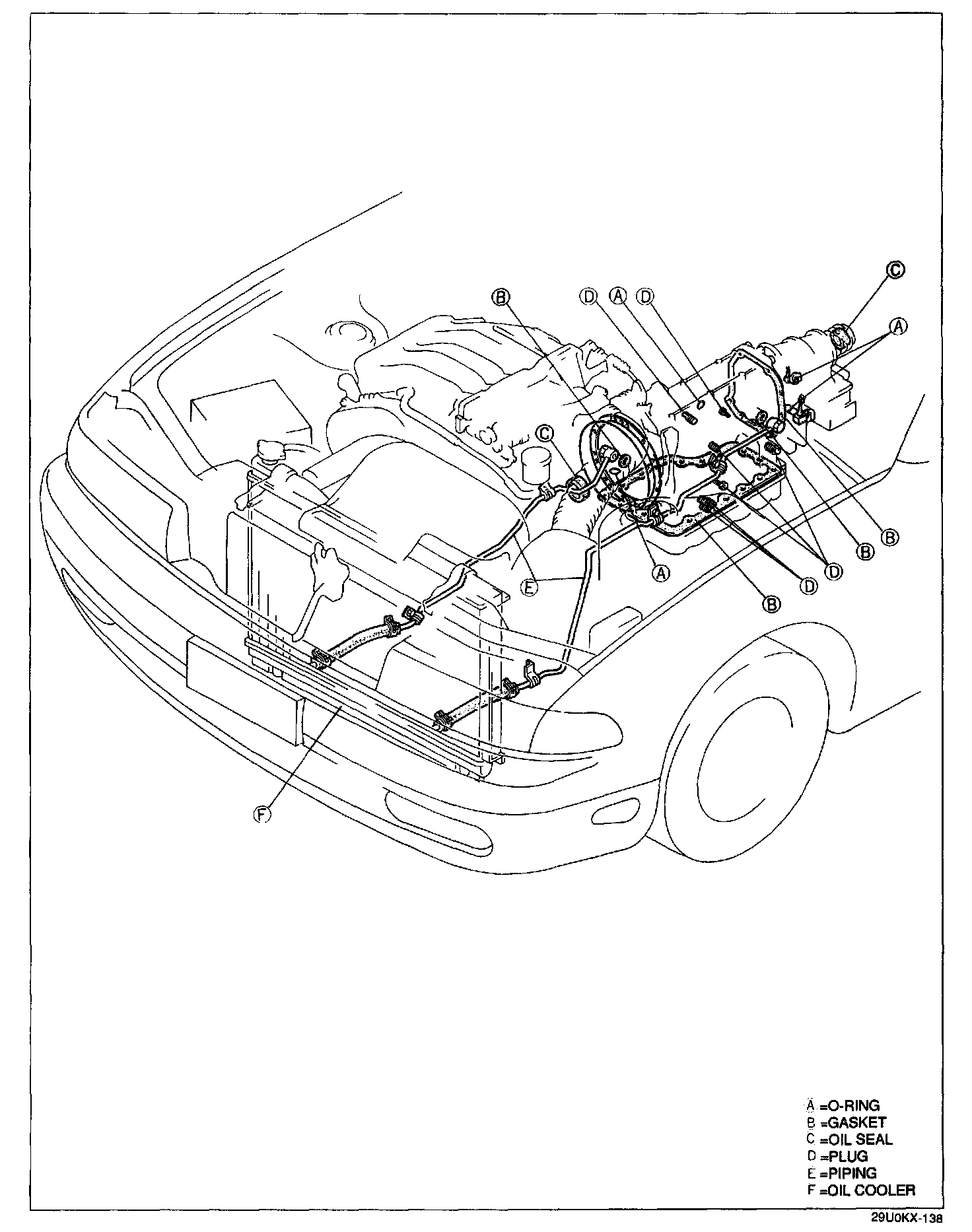 Check for ATF leakage at the points shown and repair or replace as necessary.
