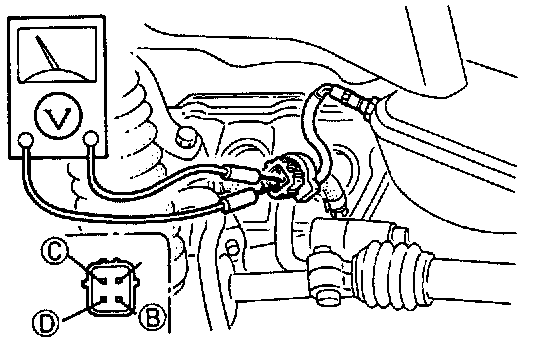 2. Unplug oxygen sensor connector and connect voltmeter between terminals A and B.