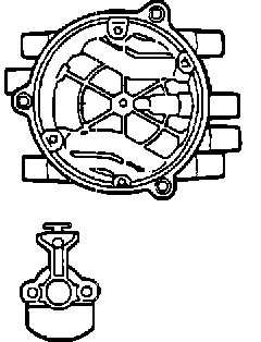 The molded plastic distributor cap has a spring loaded carbon electrode at its center and electrodes positioned around its inside perimeter that connect to the spark plugs, one for each cylinder.
