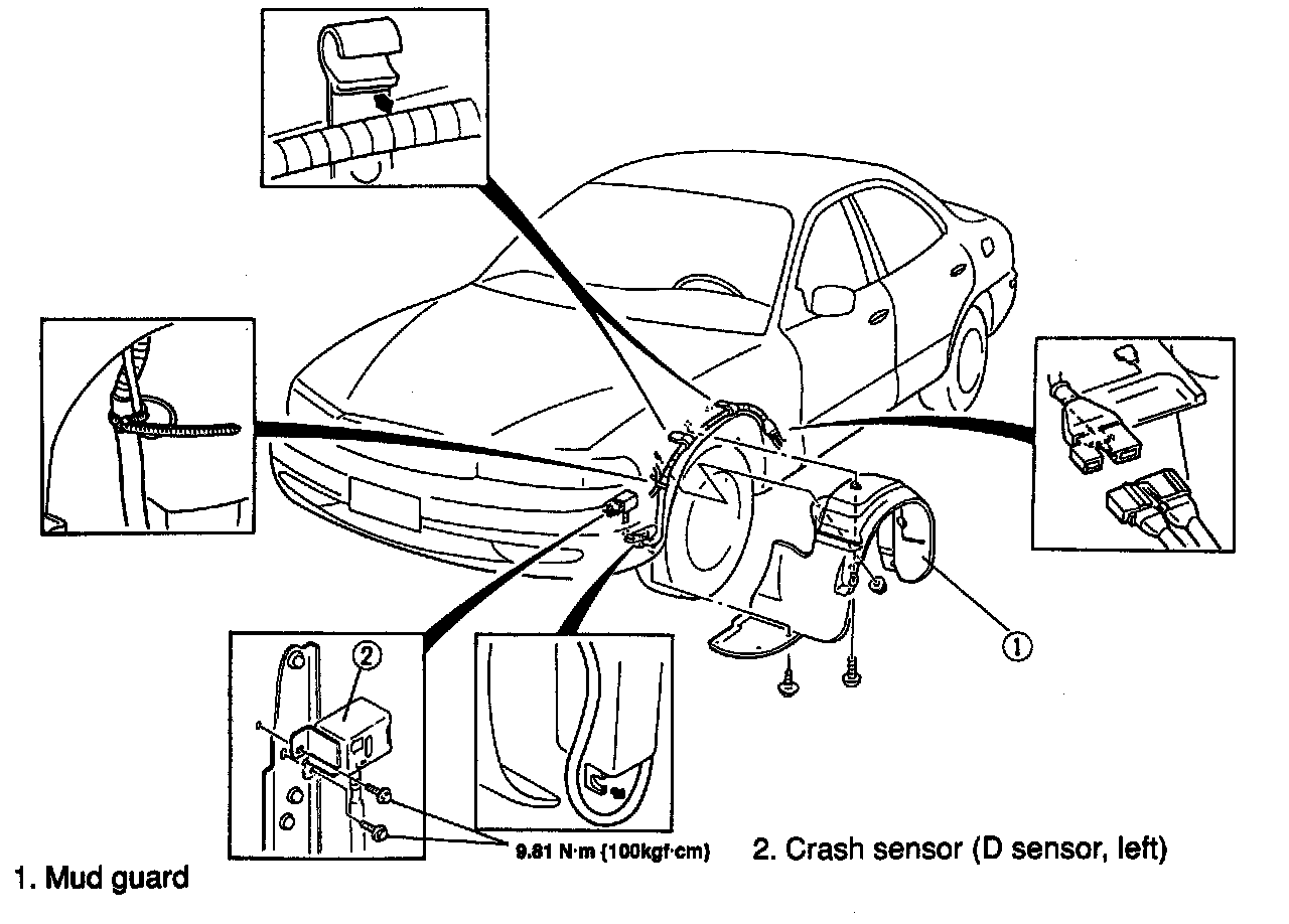 - If the crash sensor mounting area is damaged, carefully repair the area to its original shape. Install the crash sensor assembly.
