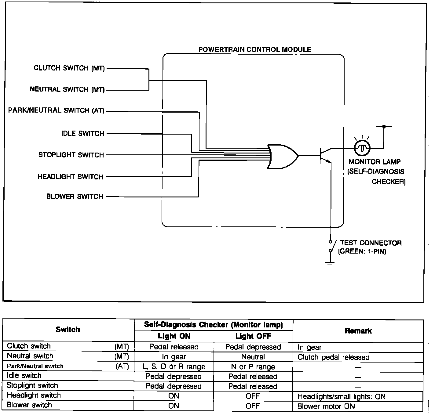 ^ The PCM Switch Monitor Function permits checking individual switches with the Mazda Self-Diagnosis Checker (SST #49 H018 9A1) or a compatible aftermarket "Scan" tool.