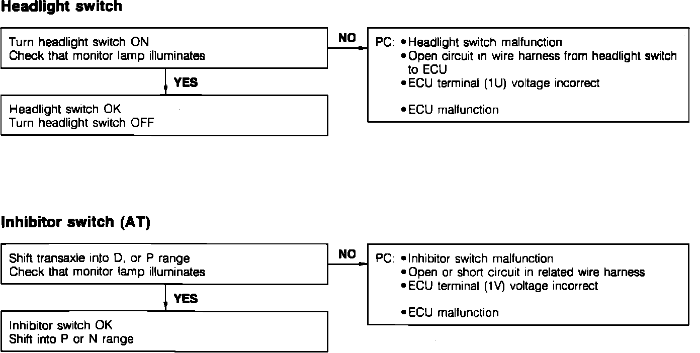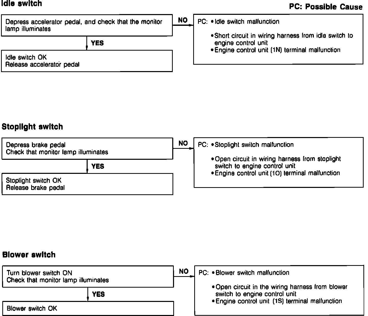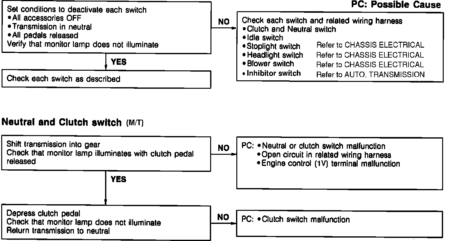 4. Turn ignition ON, then check that monitor lamp illuminates when each switch is made to function according to procedure below.