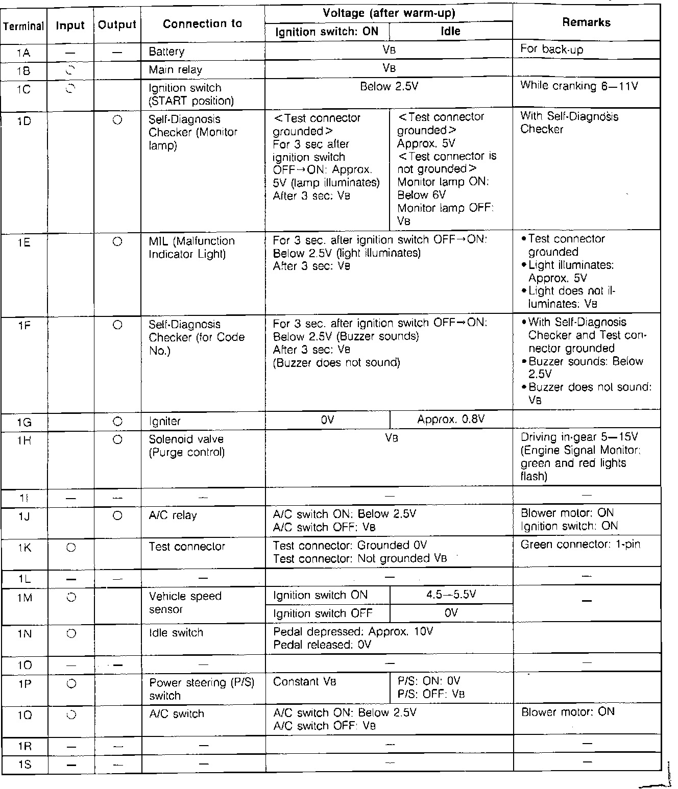 ECU Pin Voltage Chart: