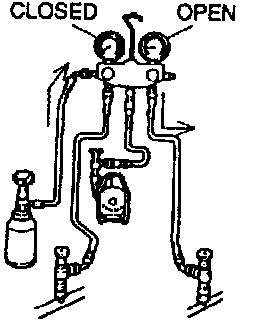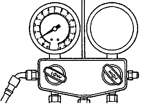 1. Connect the manifold gauge set to the refrigerant system charging valve.