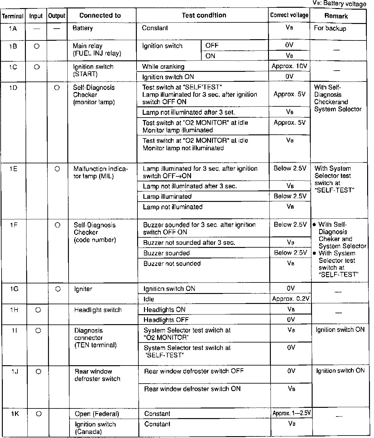 ECU Pin Voltage Chart (Part 1):