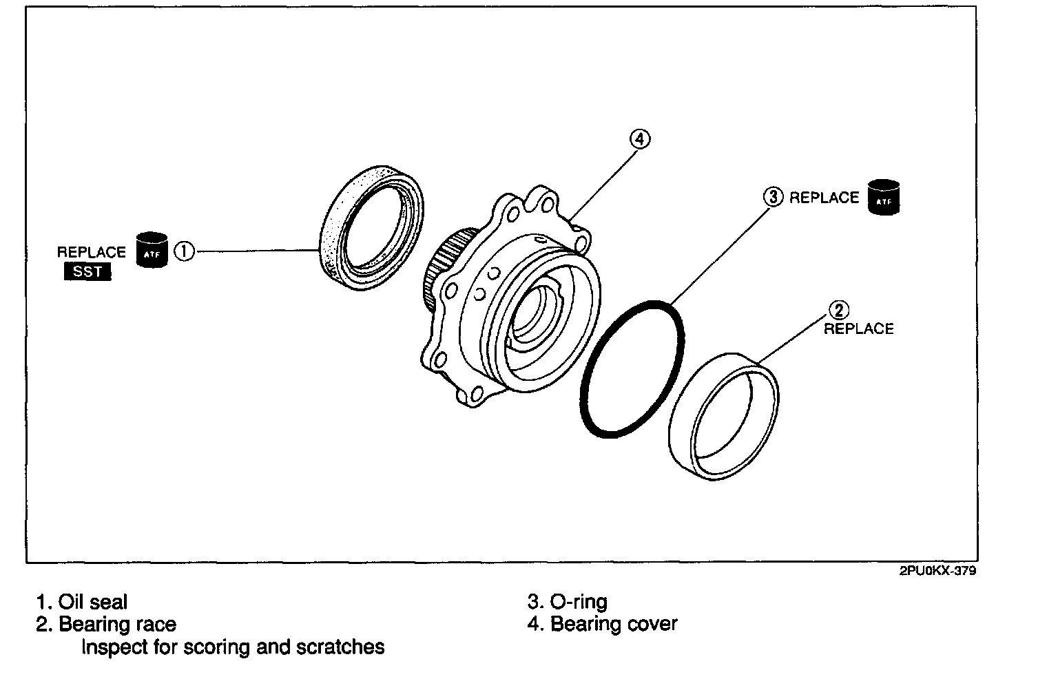 1. Apply ATF to the new O-ring and install it to bearing cover.