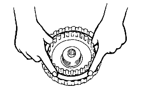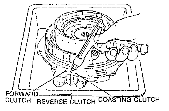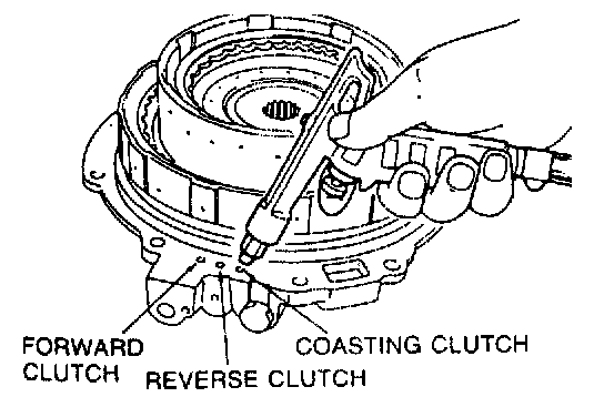 Remove the coasting clutch drum from the reverse and forward drum by applying compressed air through the fluid passage.
