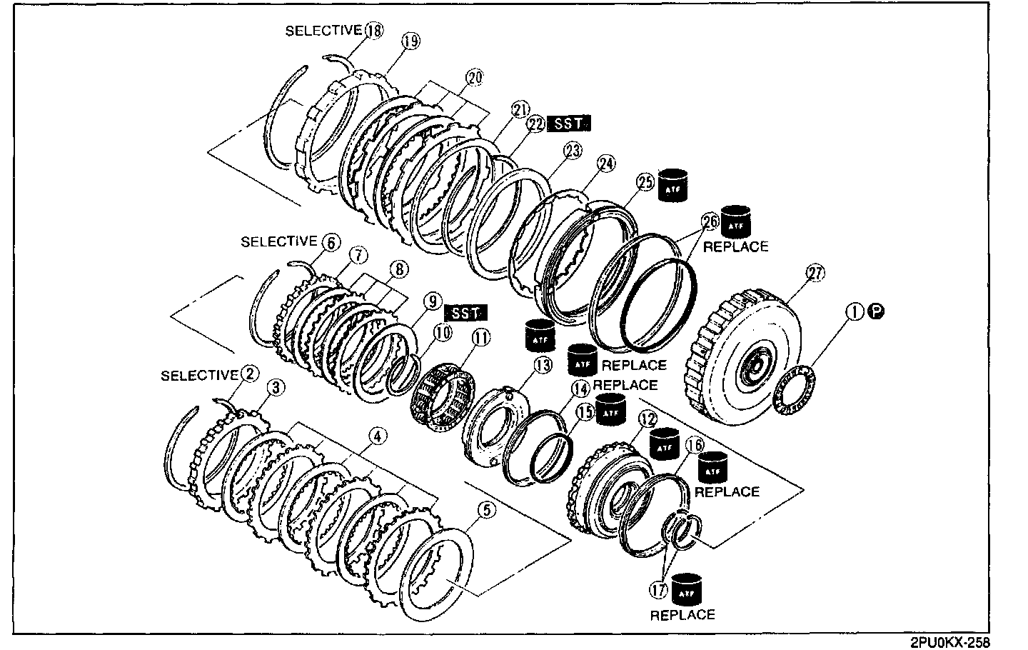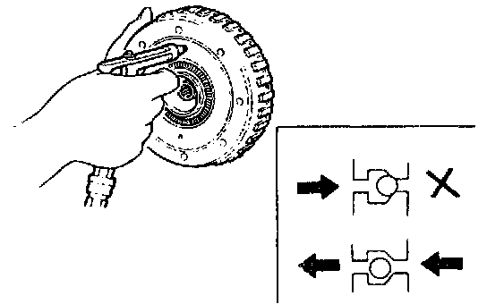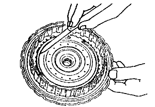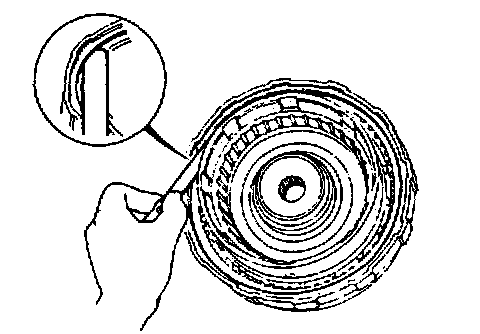 1. Apply ATF to inner and outer faces of the seals and install them onto the coasting piston.