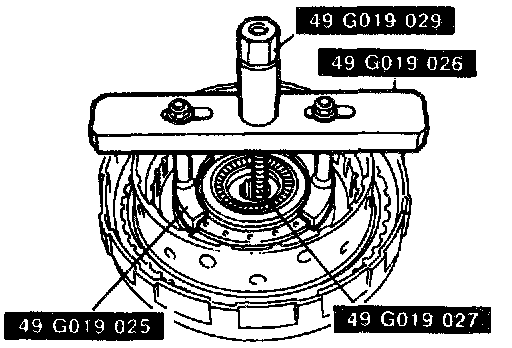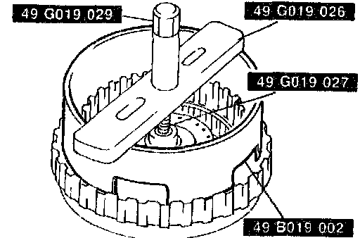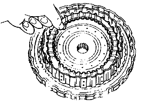 1. Remove the snap ring, retaining plate, drive plates, driven plates, and dished plate of the forward clutch.