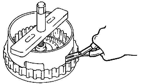 1. Measure the clearance between the snap ring and the retaining plate of the forward clutch.