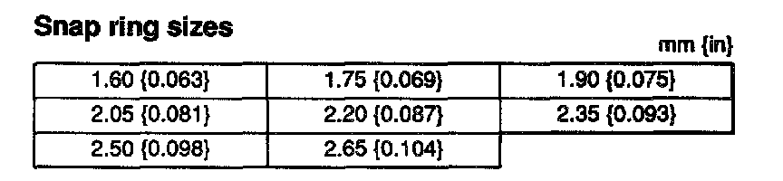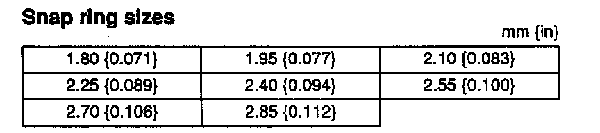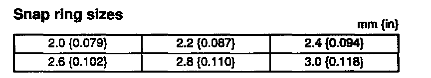 2. If the clearance is not within specification, adjust it by selecting a proper snap ring from below.