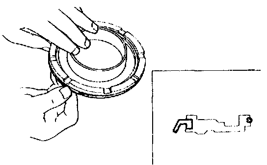 CAUTION: Depress the spring and retainer assembly only enough to install the snap ring.