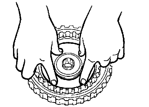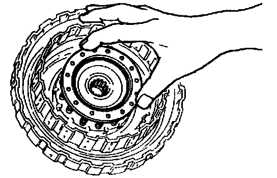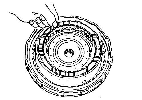 3. Install the coasting clutch drum into the reverse forward drum as shown.
