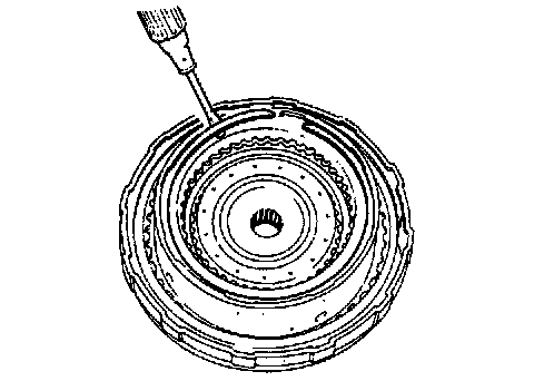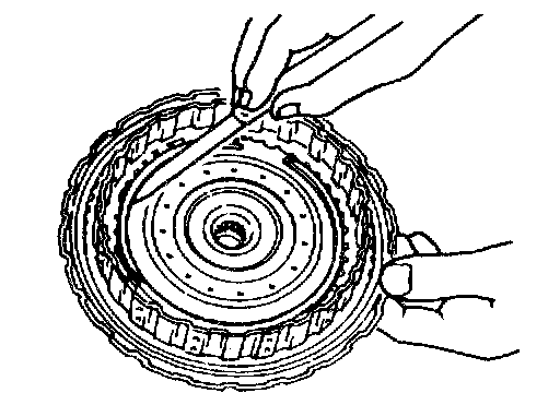 4. Install the snap ring halfway down the reverse forward drum as shown.