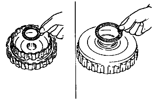 1. Apply ATF to inner and outer faces of the seals, and install them onto the coasting clutch drum.