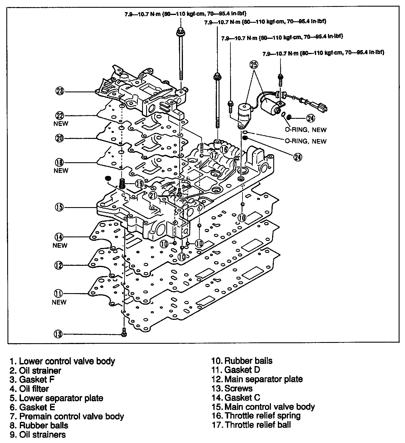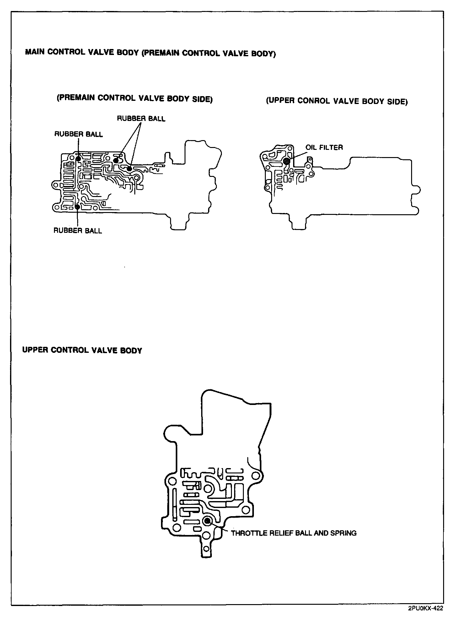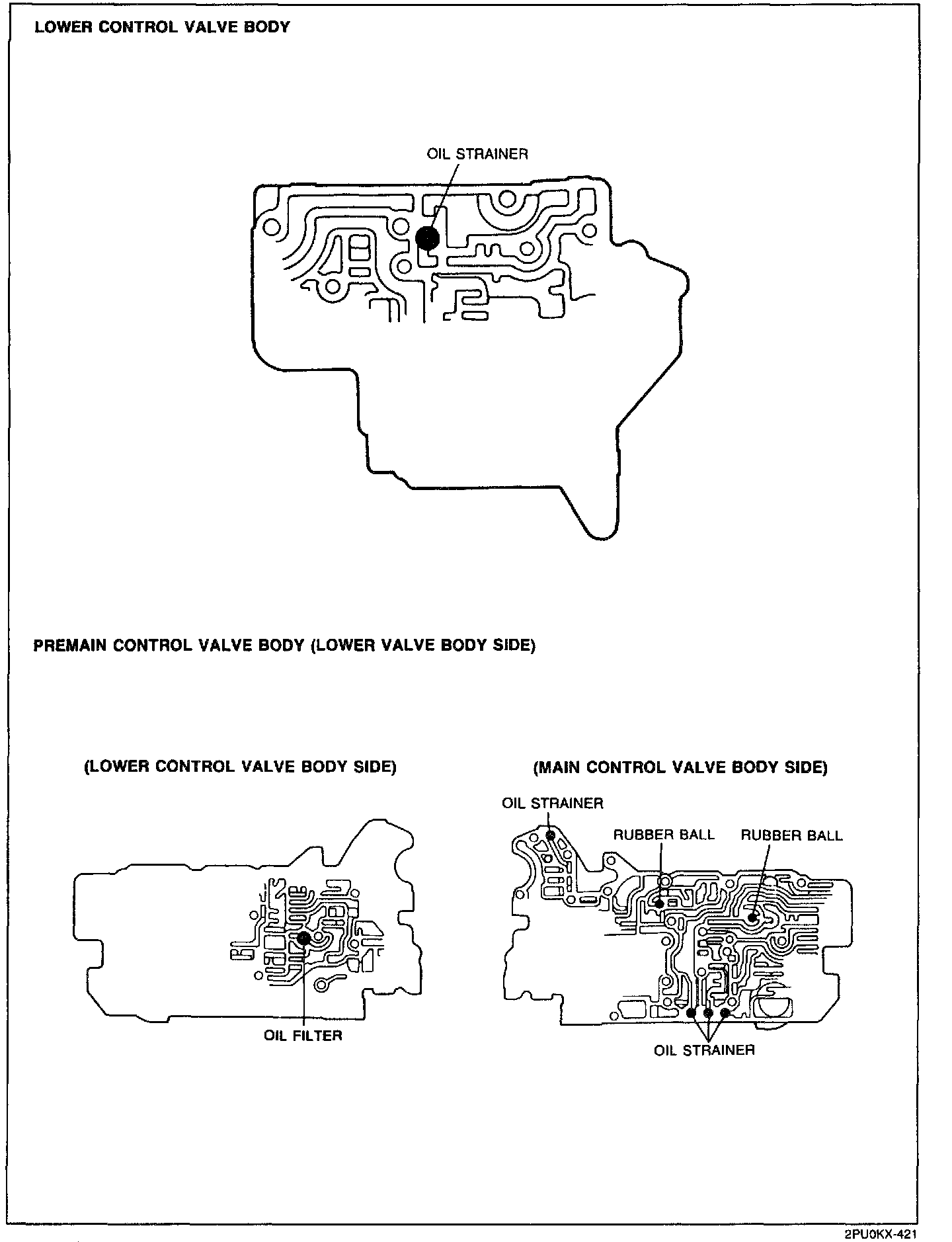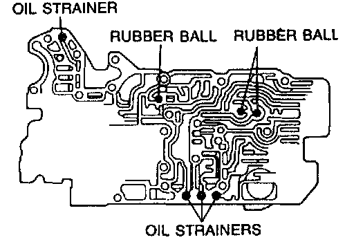 5. Install the rubber balls and oil strainers into their proper positions in the premain control valve body.