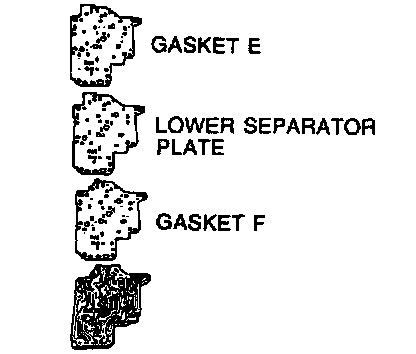 3. Set a new gasket F, lower separator plate, and new gasket E onto the lower valve body.