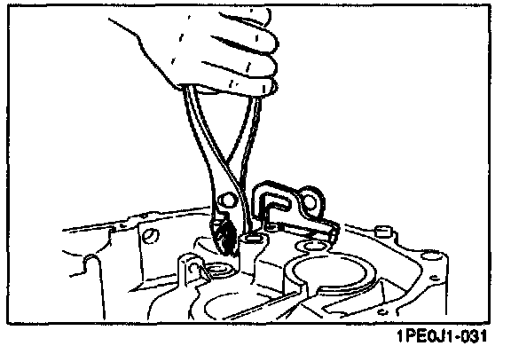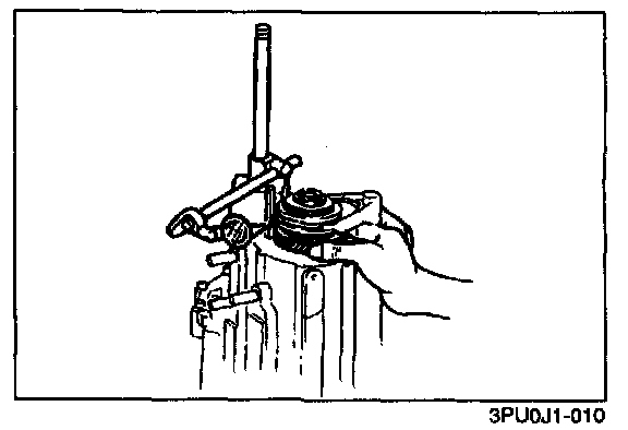 2. While holding the 1st/2nd control fork with one hand and the 3rd/4th shift fork with the other, raise them both at the same time and shift each of the clutch hub sleeves.