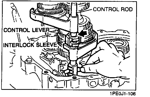 4. Separate the control rod and shift fork assembly from each of the clutch hub sleeves.