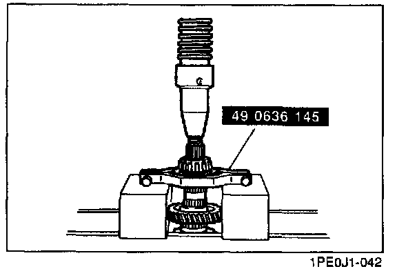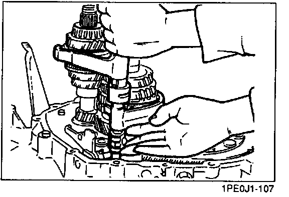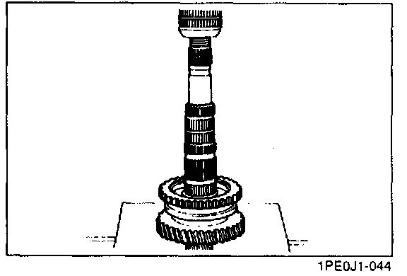 Remove the clutch hub assembly (1st/2nd), synchronizer ring (1st), and 1st gear by using a press.
