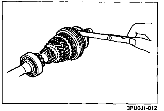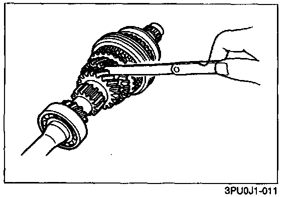 2. If the clearance exceeds the maximum, check the contact surfaces of 5th gear and the clutch hub. Replace worn or damaged parts.