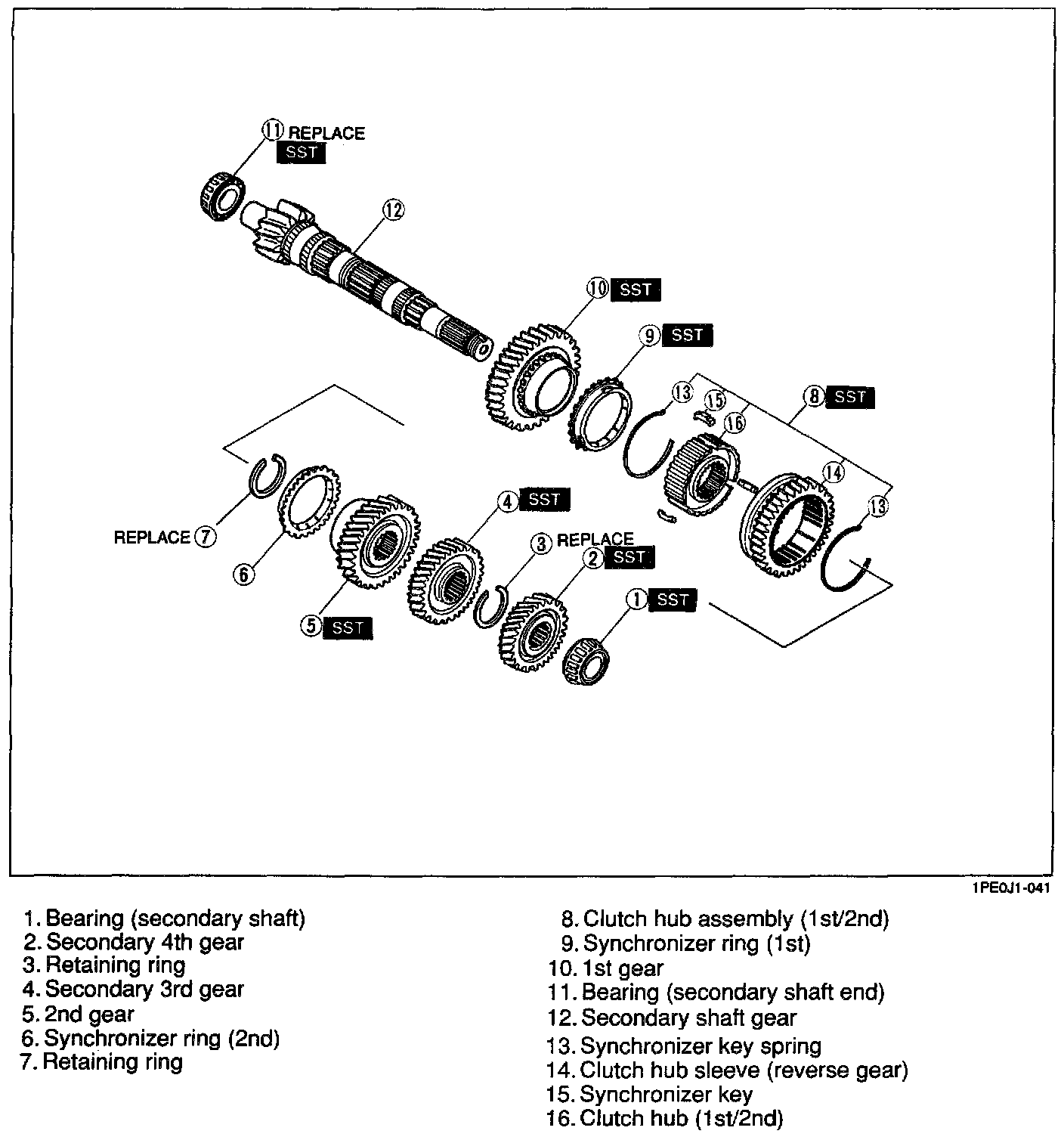 3. Remove the secondary 3rd gear and 2nd gear by using the SST.