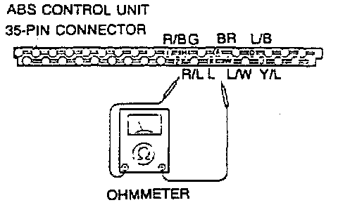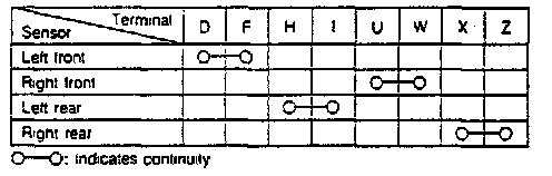 4. On 1993 models, if continuity is satisfactory, check voltage between 1K and 1G, 10 and 1Q, 1U and 1F, 1L and 1P while rotating wheel one revolution per second by hand.