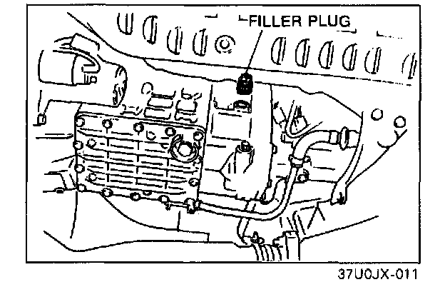 6. Remove the filler plug and add the specified oil through the filler plug port until the level rises to the bottom of the port.