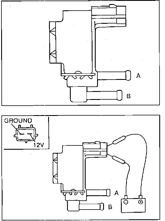 3. Apply battery voltage to solenoid and check that air now flows through from A to B.