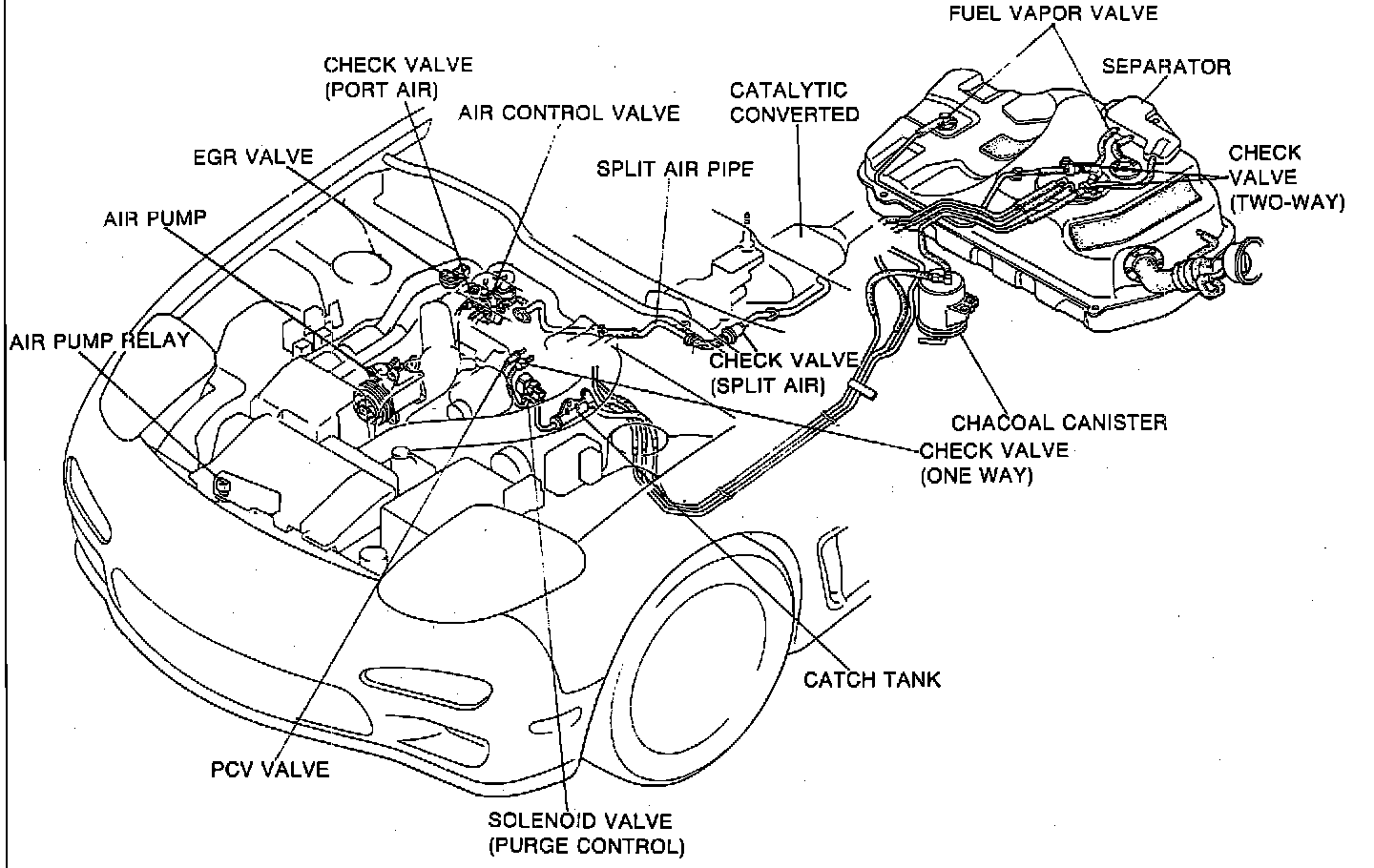 To reduce exhaust emissions, these vehicles use an evaporative emission control system, exhaust gas recirculation system, positive crankcase ventilation system, three way catalytic converters, secondary air injection system, and electronic gasoline injection.