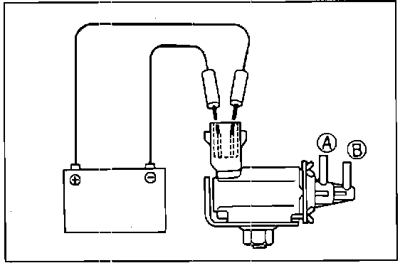 3. Apply battery voltage across solenoid terminals. Verify that air now flows through.