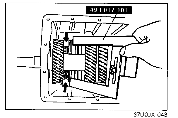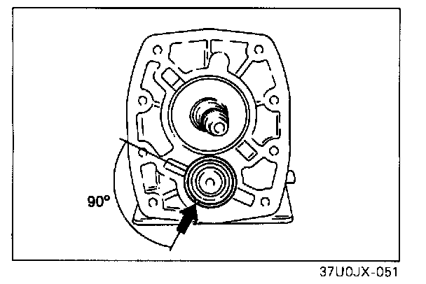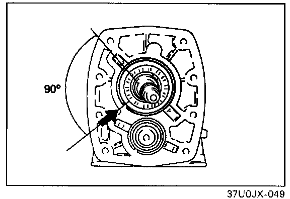 1. Turn the bearing snap rings so that the ends are 90° to the transmission case grooves.