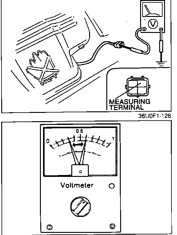 2. Unplug sensor connector. Connect voltmeter between sensor measuring terminal and ground.