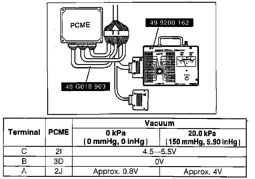 1. Unplug PCME connector. Hook up SST as shown, and a vacuum pump.