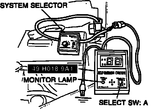 2. Connect System Selector (SST 49 B019 9A0) and Self-Diagnosis Checker (SST 49 H018 9A1), or aftermarket equivalents, to data link connector.