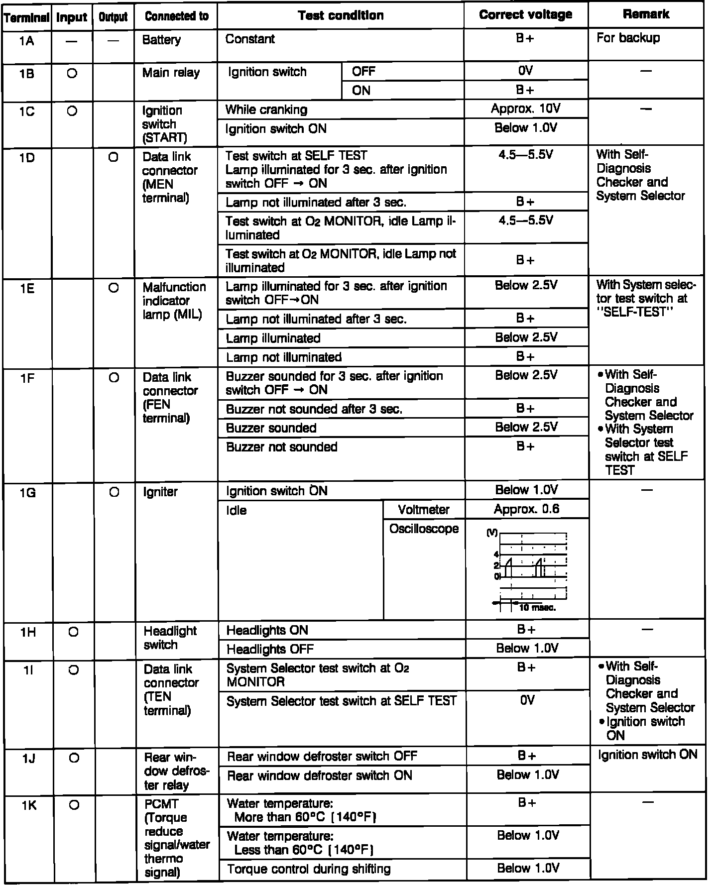 PCME Pin Voltage Chart (Part 1):