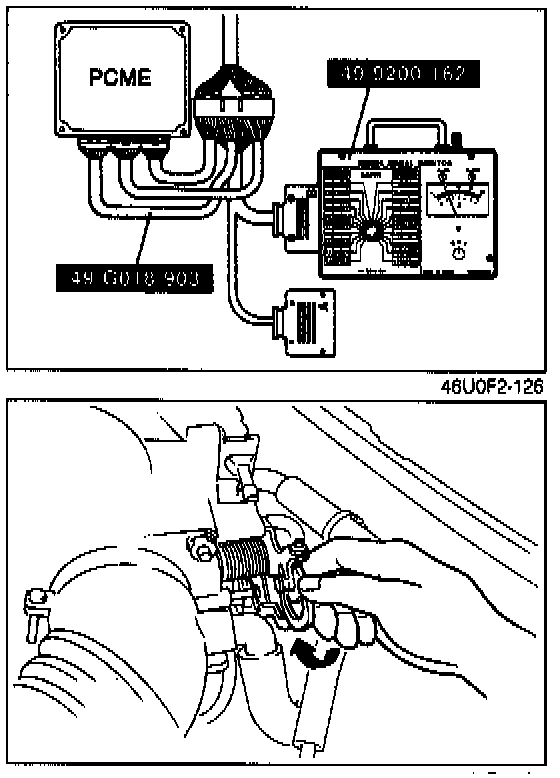 1. Connect Engine Signal Monitor and Adapter Harness, or aftermarket equivalents, to PCME.