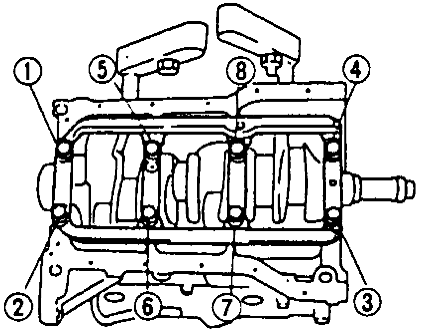 Fig. 25 Main Bearing Cap Bolt Removal Sequence: