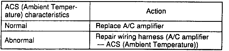 2. Measure resistance between terminal wires (L/Y) and (L/O) of the connector, and measure the temperature around the ACS (Ambient Temperature).
