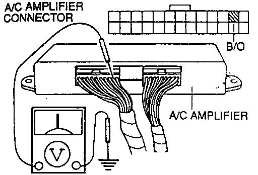 3. Measure the voltage at terminal wire (B/O) of the A/C amplifier connector.